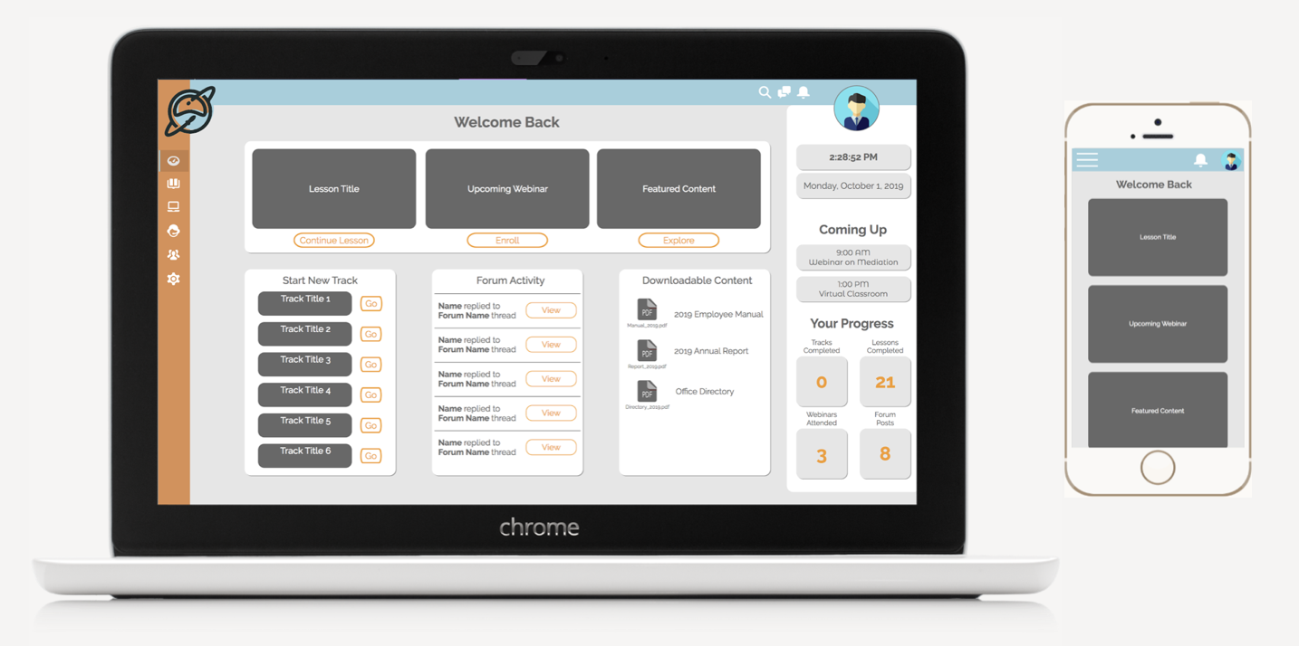 This was a rapid prototyping project (for desktop and mobile) in which my teammate and I created an organization-wide learning management system platform based on comparative research for the United Nations using Axure software.